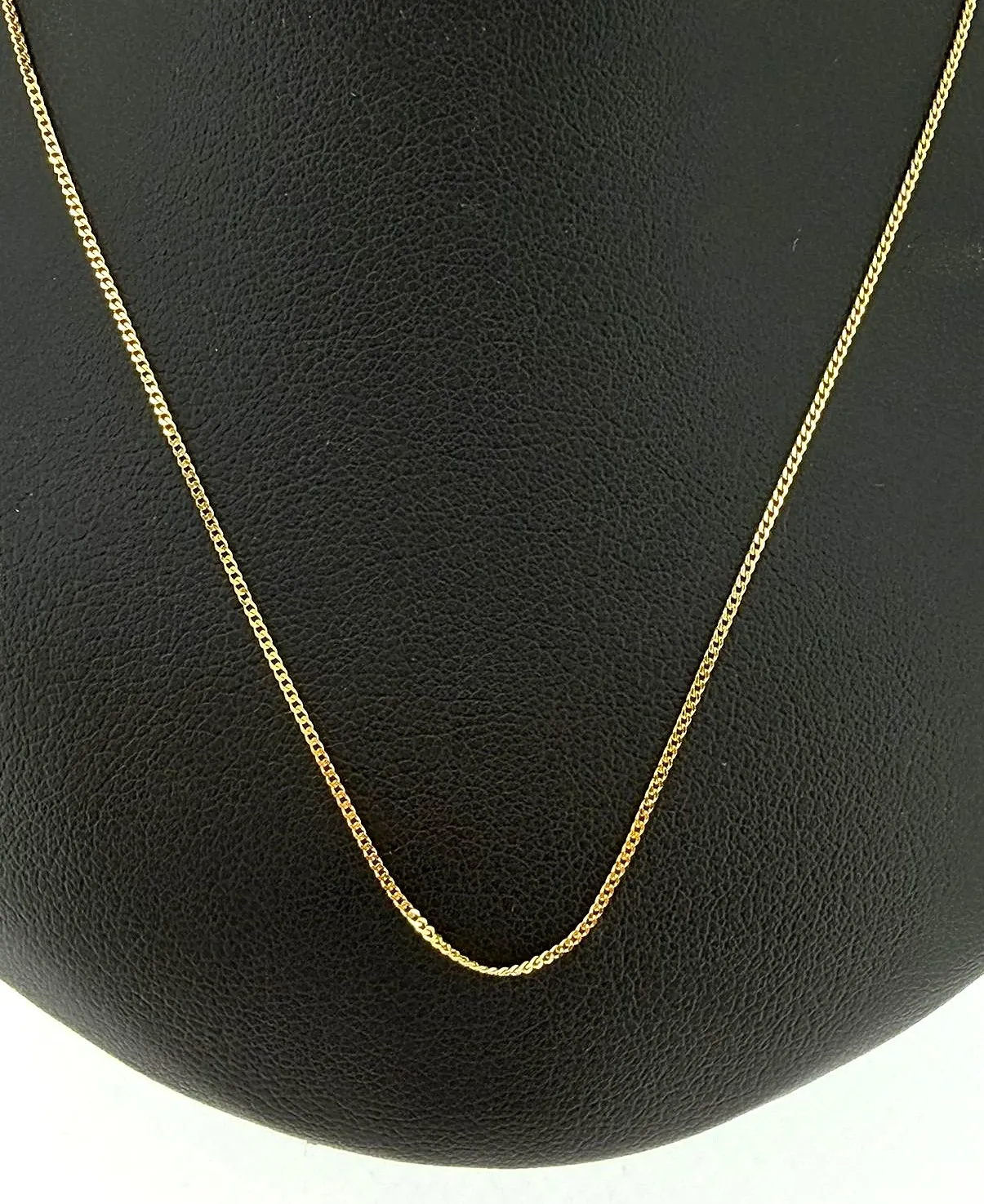 Add a touch of classic elegance with this 9ct Gold Traditional Curb Chain. Crafted from solid 9 carat yellow gold, it features 0.85mm fine curb links that create a delicate, polished finish perfect for everyday wear. Measuring 18 inches in length, this lightweight chain sits beautifully at the neckline, ideal for layering or wearing with a pendant. The spring ring clasp ensures secure and comfortable wear. Features: