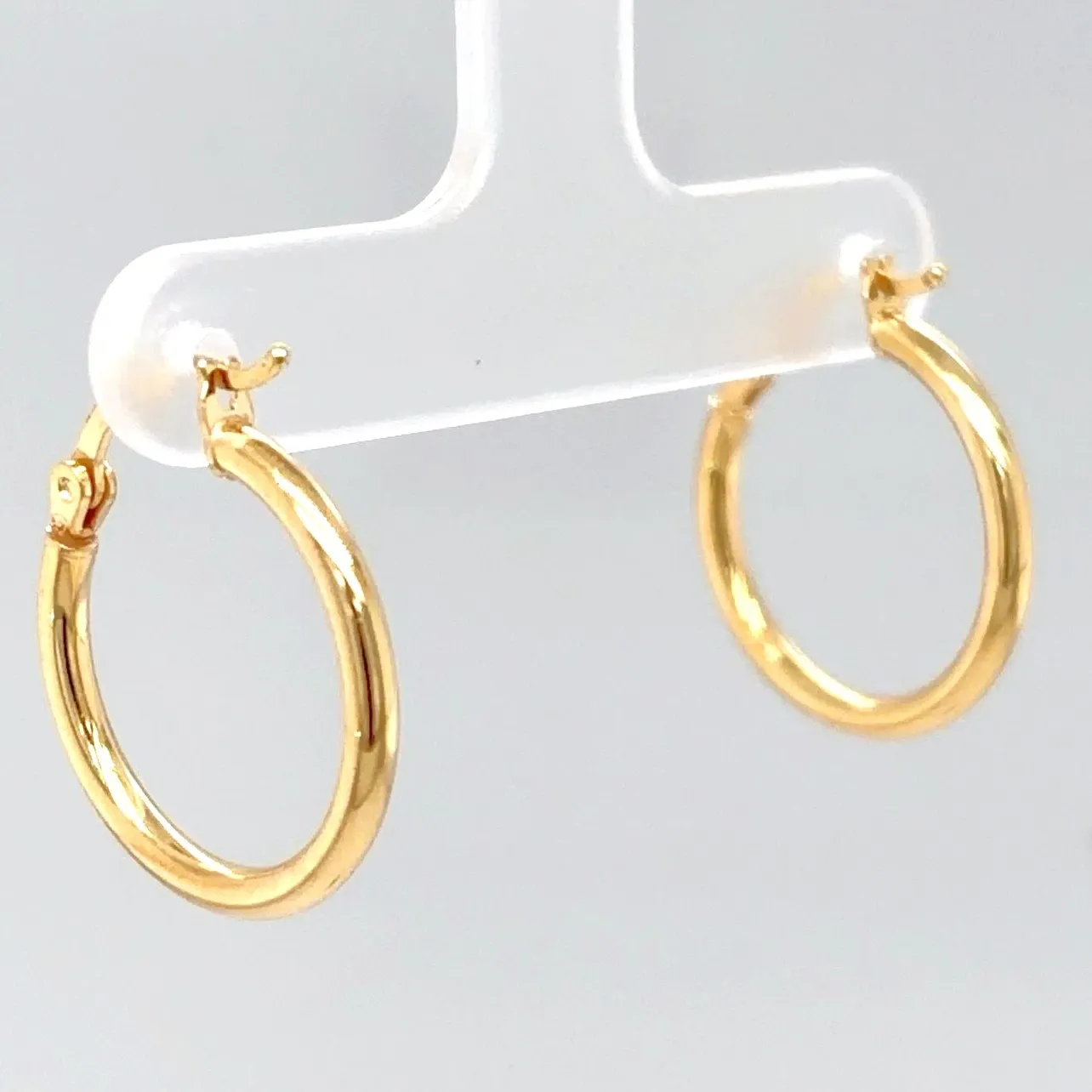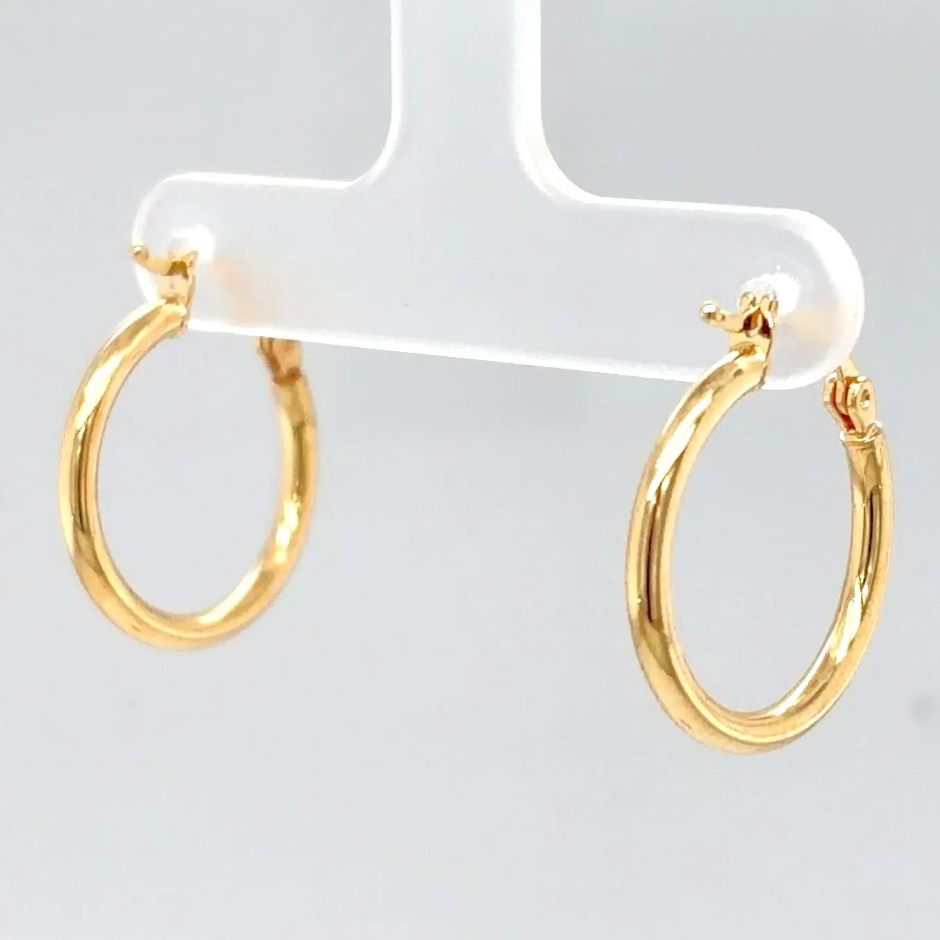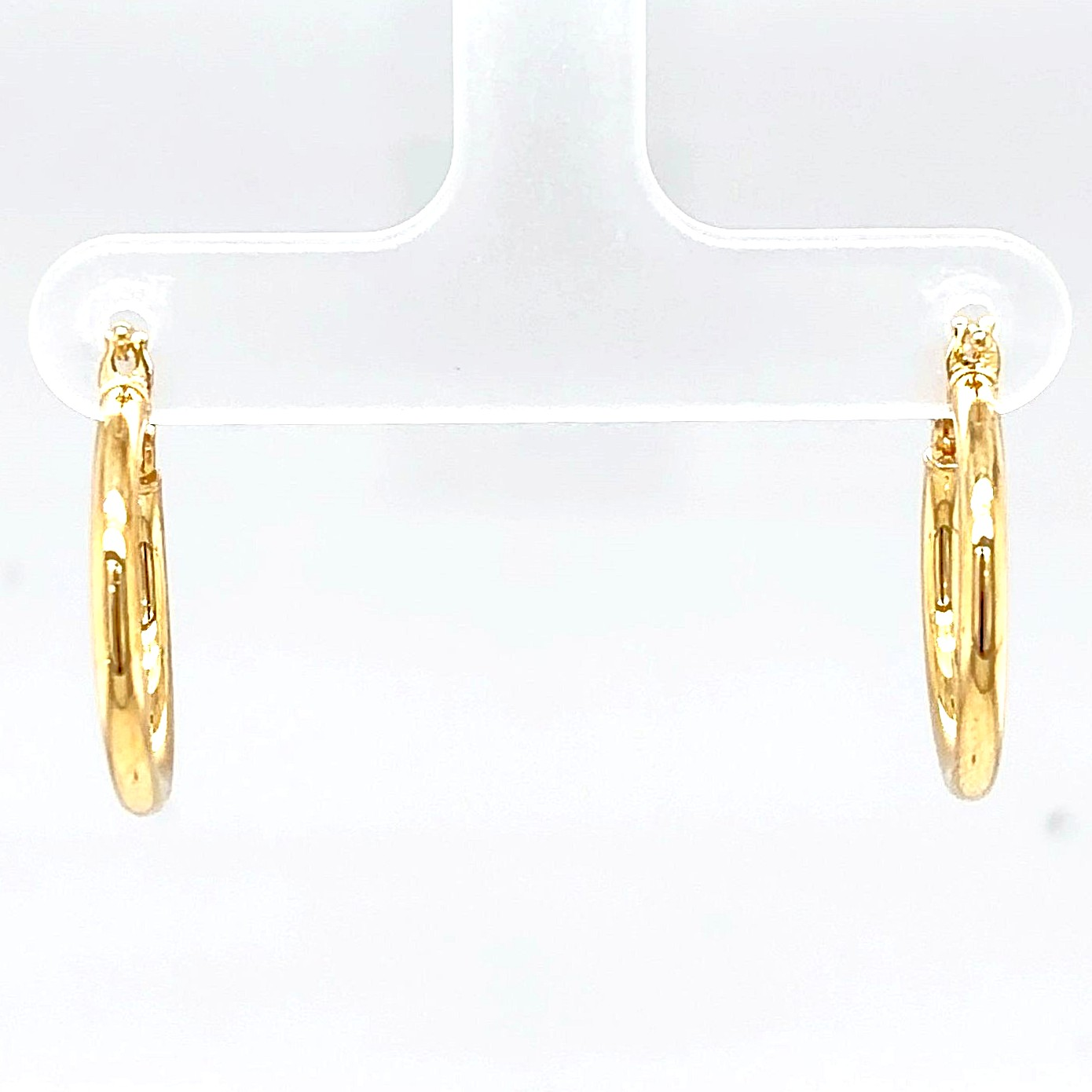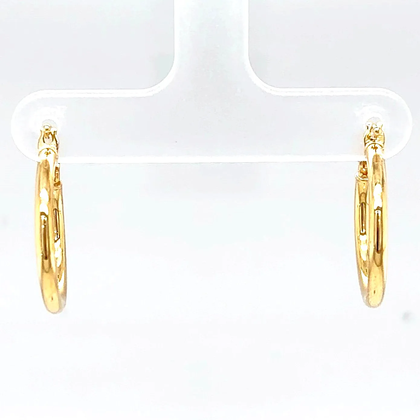 Add a touch of timeless elegance with these 9ct gold hoop earrings, featuring a sleek and classic design. Measuring 20mm in diameter and 2.1mm in width, these lightweight hoops (0.8g) offer comfort for all-day wear while maintaining a polished, sophisticated look. Perfect for both everyday style and special occasions, these versatile earrings are ideal for layering with other jewellery or wearing alone as a subtle statement piece. Features: