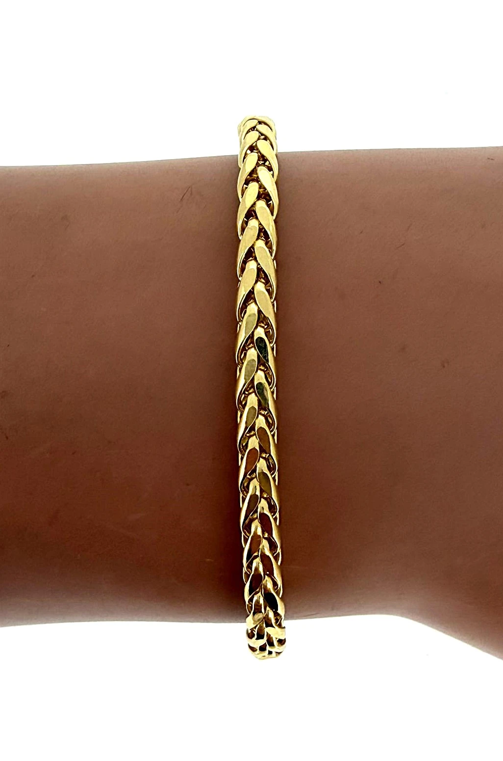 A subtle yet sophisticated addition to any jewellery collection, this 9ct Gold Fancy Spiga Bracelet features an elegant 3.3mm spiga (wheat) link design, expertly crafted from solid 9 carat yellow gold. Its polished finish catches the light beautifully, offering a refined shine that suits both casual and formal occasions. With a length of 8.5 inches, it provides a comfortable fit, ideal for those who prefer a slightly longer bracelet. Durable and stylish, this classic piece can be worn alone or layered with other bracelets for a modern, personalised look. Features: