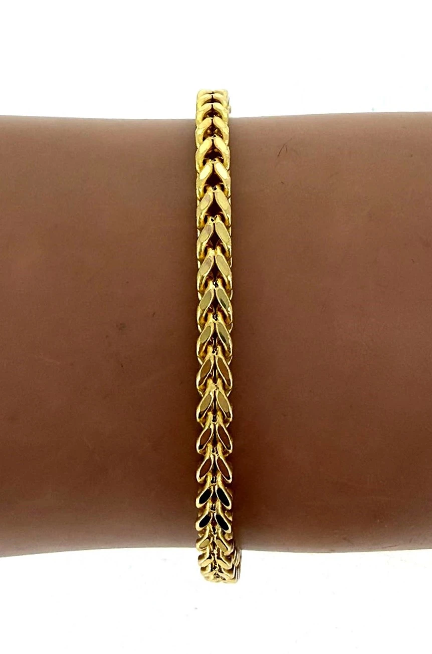 Elegant and refined, this 9ct Gold Fancy Spiga Bracelet adds a touch of sophistication to any look. Crafted from high-quality 9 carat yellow gold, the intricate 3.5mm spiga (wheat) link design offers both strength and style, with a luxurious polished finish that catches the light beautifully. Measuring 7.0 inches in length, it provides a comfortable and secure fit, perfect for everyday wear or special occasions. This timeless piece can be worn alone for understated elegance or layered with other bracelets for a modern look. Features: