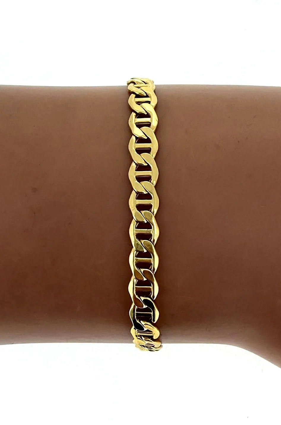 Add a touch of timeless elegance to your look with this stunning 9ct Gold Fancy Bracelet. Expertly crafted from rich, warm 9 carat gold, this 5.0mm bracelet features an intricate, eye-catching design that beautifully catches the light from every angle. Measuring 7.5 inches in length, it offers a comfortable and secure fit, making it perfect for everyday wear or special occasions. Its classic yet contemporary style ensures it pairs effortlessly with both casual and formal outfits. Whether worn alone as a statement piece or layered with other bracelets, this 9ct Gold Fancy Bracelet is a versatile and luxurious addition to any jewellery collection. Features: