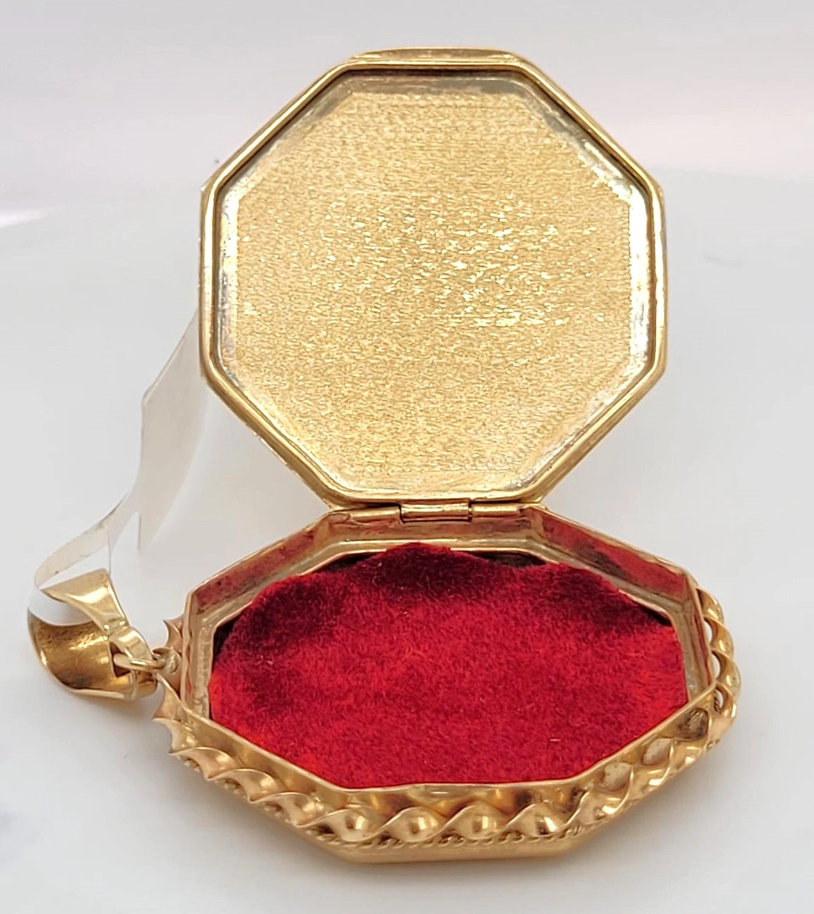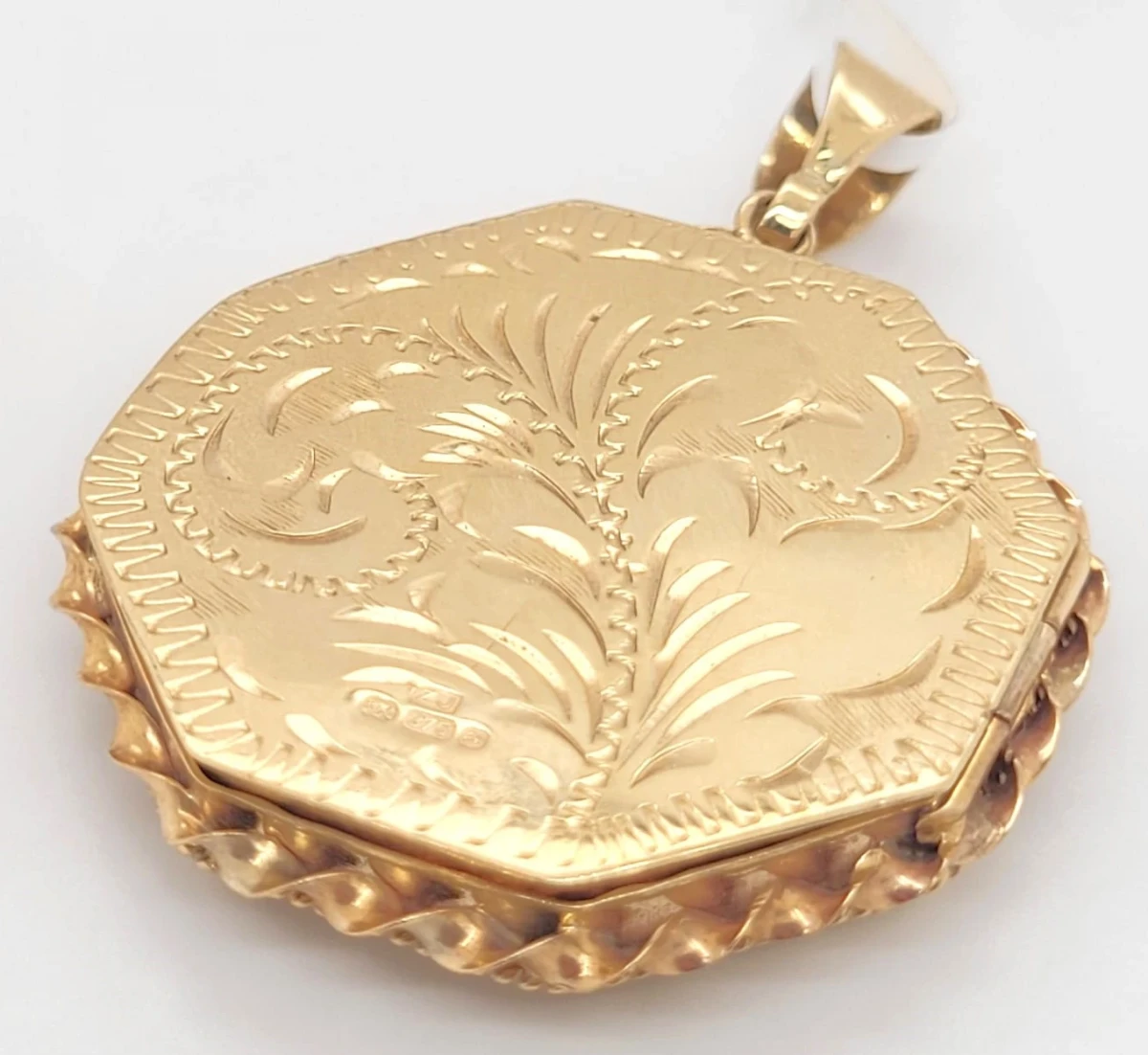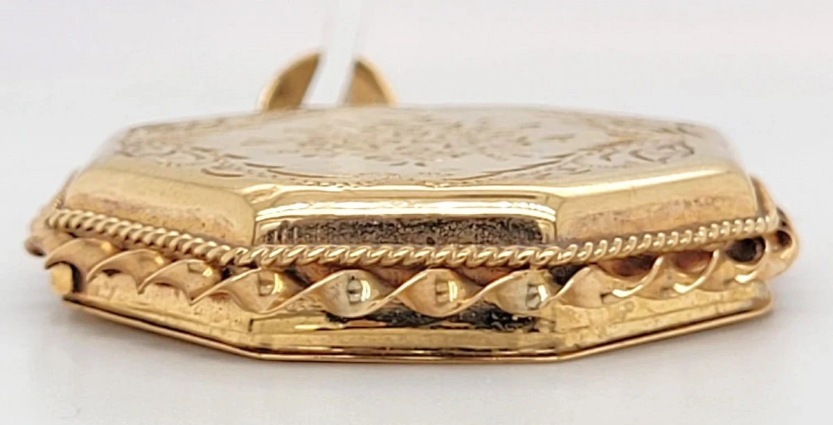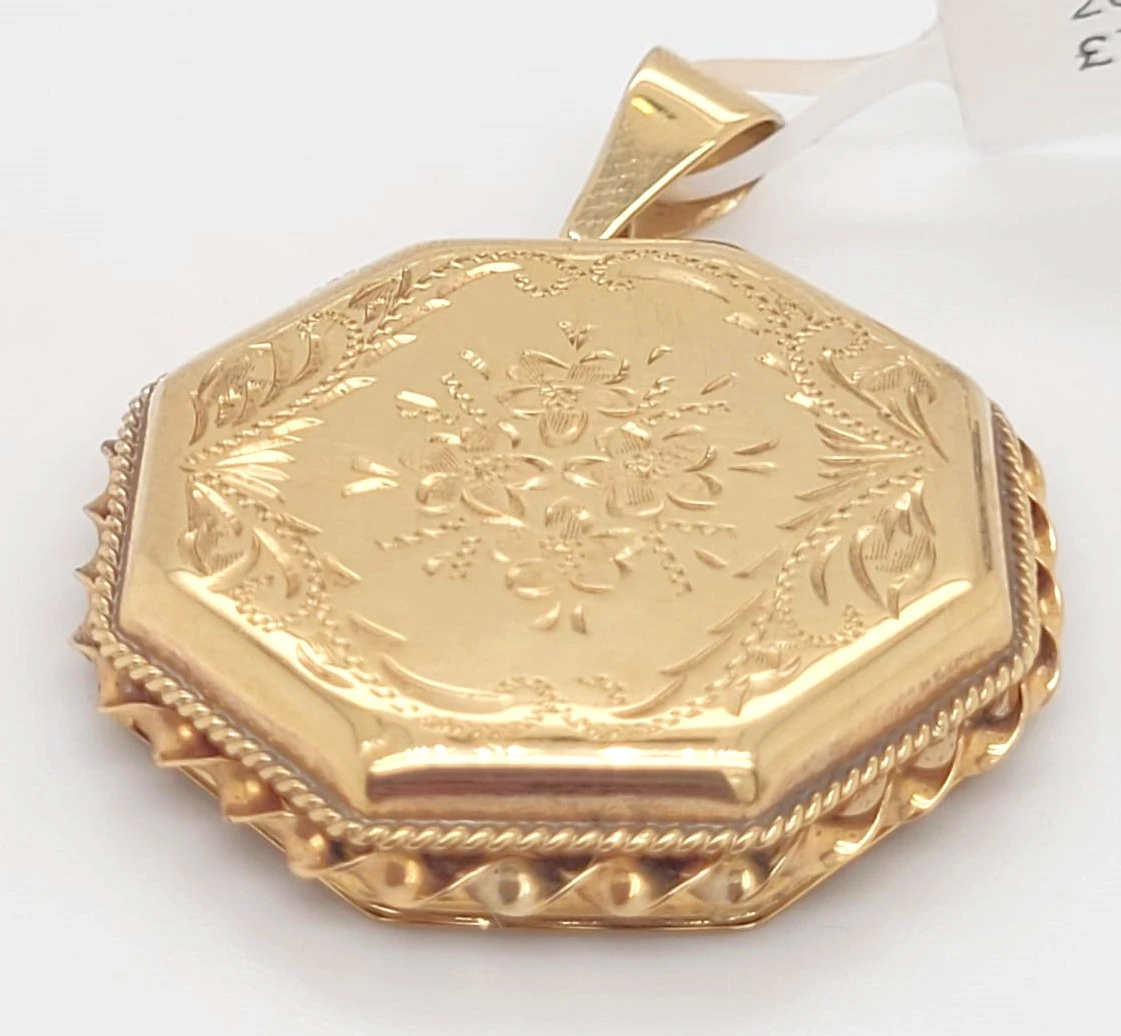 Keep treasured memories close with this elegant 9ct gold fancy octagonal locket. Beautifully crafted with intricate detailing, its unique octagonal shape offers a stylish alternative to the classic round or oval locket, making it a distinctive piece of fine jewellery. Weighing 9.4g, this substantial locket has space inside for cherished photographs or keepsakes, secured by a sturdy hinge and clasp. The polished 9ct yellow gold finish ensures timeless appeal, whether worn every day or reserved for special occasions. Details:
