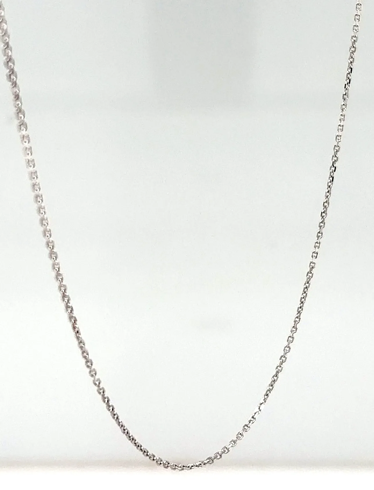 Add a touch of subtle elegance with this 9ct White Gold Traditional Curb Chain. Crafted from solid 9 carat white gold, it features 0.8mm fine curb links for a delicate, polished finish. Available in 16-inch or 18-inch lengths, this chain sits gracefully at the neckline, perfect for layering or wearing with a pendant. The secure spring ring clasp ensures reliability while maintaining a refined look, making it ideal for everyday wear. Features: