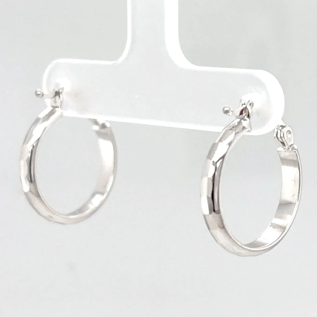 Add a sparkling touch to any outfit with these 9ct white gold diamond-cut hoop earrings. Measuring 17.7mm in diameter and 3.1mm in width, these lightweight hoops (1.5g) feature a diamond-cut finish that catches the light beautifully, creating subtle brilliance with every movement. Perfect for everyday wear or special occasions, these versatile earrings are designed to be worn alone or layered with other pieces for a chic, contemporary look. Features: