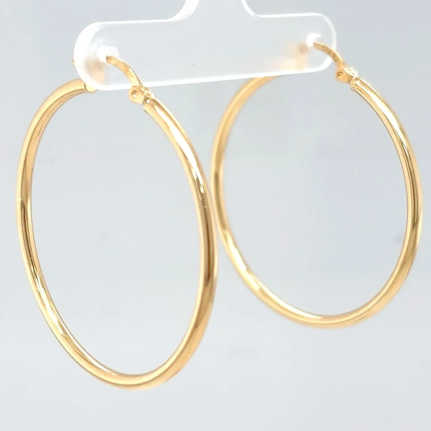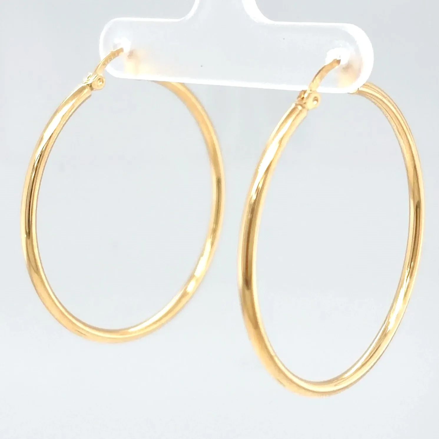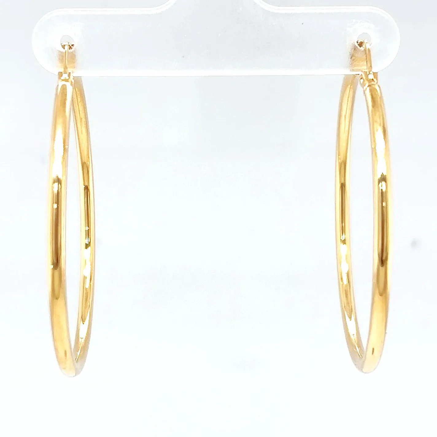 Classic and effortlessly stylish, these 9ct yellow gold hoop earrings offer a sleek, polished finish ideal for everyday wear or adding a touch of elegance to any outfit. Measuring 38mm in diameter and 2.3mm in width, they provide a bold yet lightweight look at just 1.6g. The smooth gold design makes them versatile and timeless, perfect for pairing with both casual and formal ensembles. With a secure hinged fastening, these hoops offer comfort and ease of wear throughout the day. A staple addition to any jewellery collection. Details: