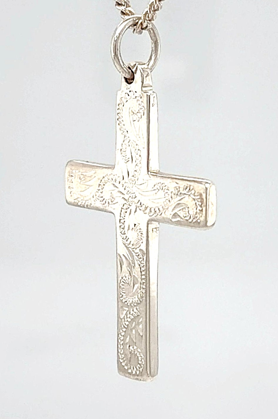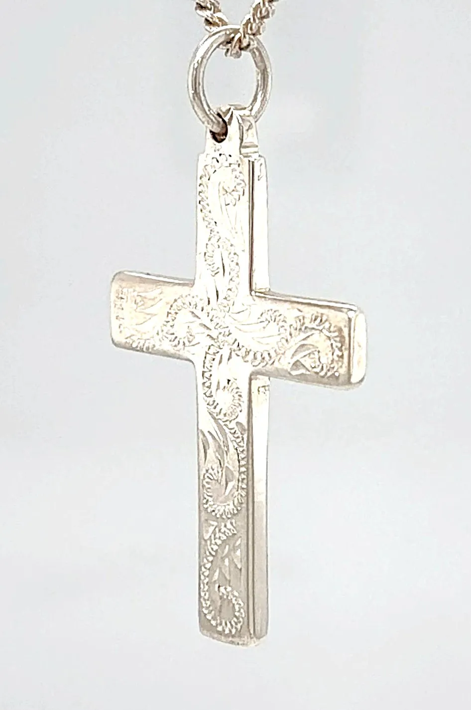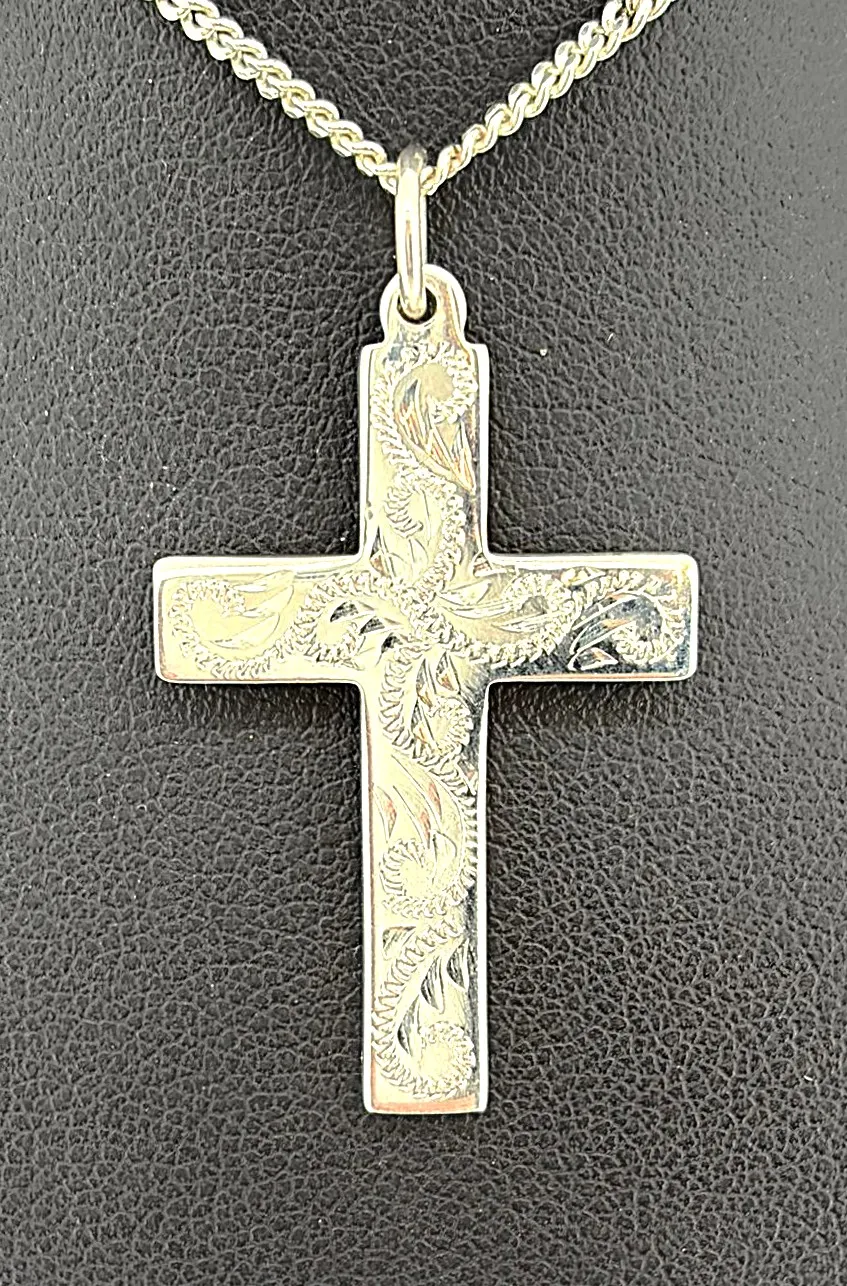Elegant and meaningful, this hand-engraved sterling silver cross pendant combines craftsmanship with timeless style. The intricate engraving adds depth and character to a classic cross design, making it a distinctive accessory for everyday wear or special occasions. Crafted from high-quality 925 sterling silver, the pendant weighs 5.2 grams and measures 35mm x 25mm x 2.0mm, offering a comfortable and durable design. Its polished finish highlights the hand-engraved details, making it a thoughtful keepsake or gift. Perfect for christenings, confirmations, birthdays, or as a personal expression of faith, this cross pendant blends elegance with symbolism.
