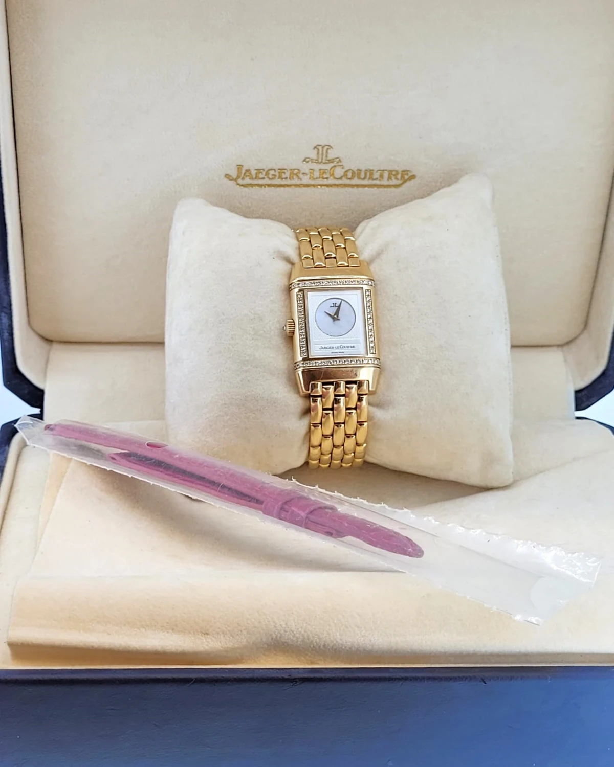 Powered by Jaeger-LeCoultre’s reliable quartz movement, this timepiece combines precision with effortless wearability. Produced circa 1999, the Ref. 266.244 remains a timeless addition to any fine watch collection, blending sophistication, versatility, and the unique charm of the Reverso line.