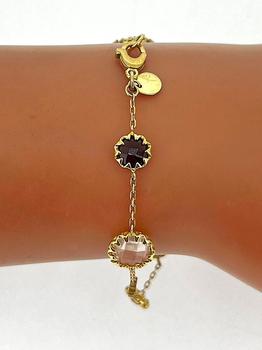 The harmonious combination of vibrant gemstones set in warm 9ct gold creates a playful yet refined look, perfect for adding a touch of luxury to everyday outfits or special occasions. This bracelet is a versatile and timeless accessory that makes a thoughtful gift or statement piece.