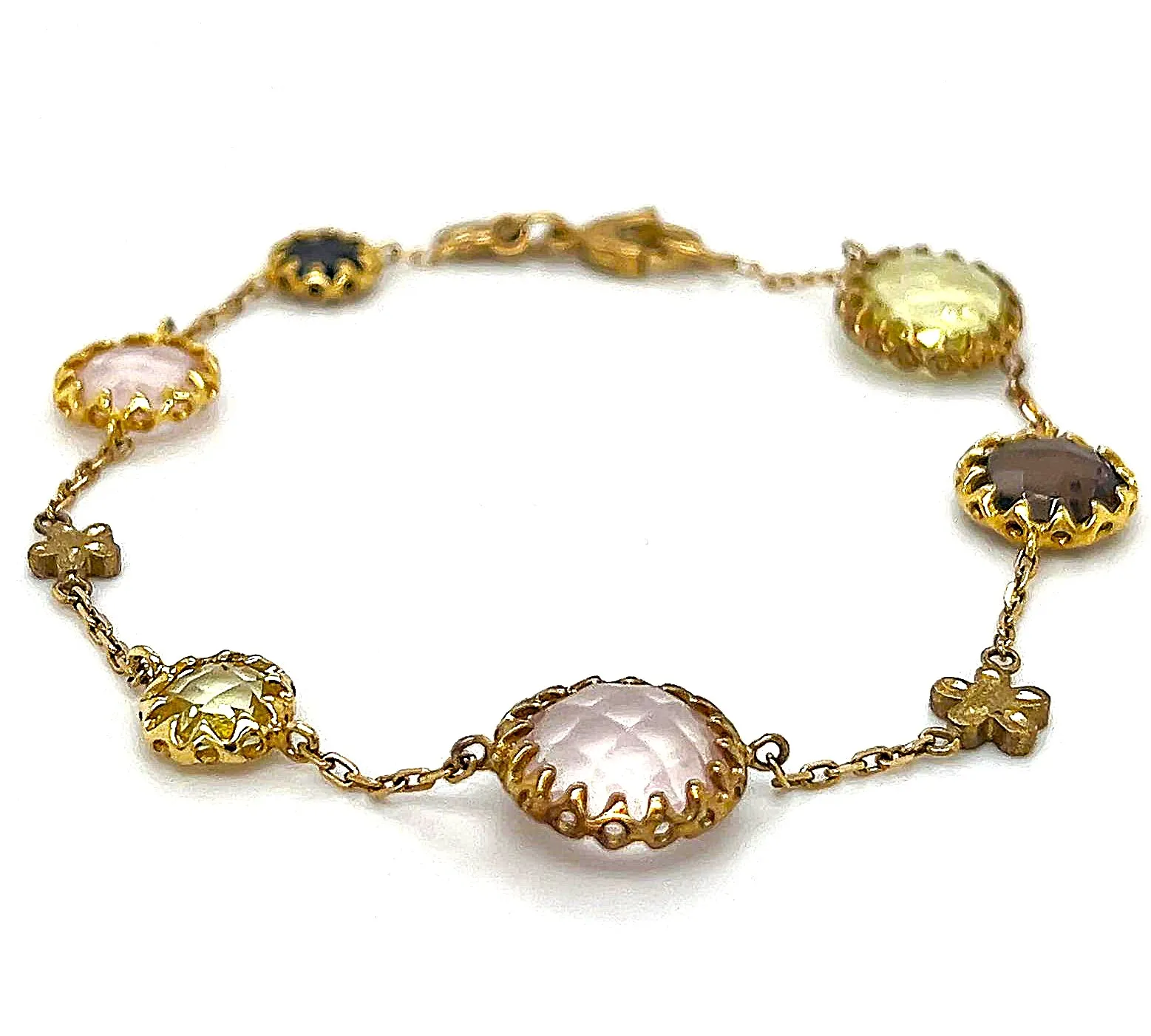 Multi Gem Stone & 9ct Gold Fancy Bracelet 6.6g 7.5inch