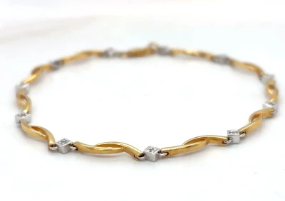 0.06ct Diamond & 9ct Gold Ornate Bracelet 7.5 Inch 3.5g