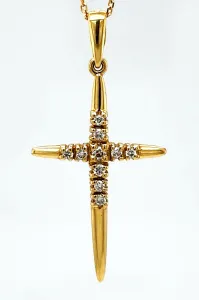 0.10ct Diamond & 18ct Gold Cross Pendant 1.18g ( 30mm x 15mm)
