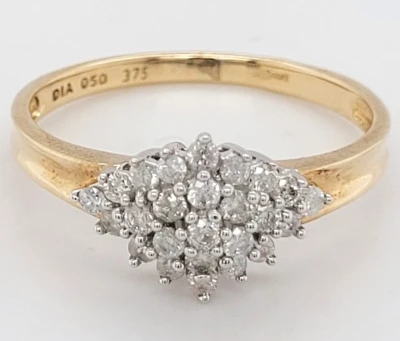 0.50ct Diamond & 9ct Gold Cluster Ring 2.4g