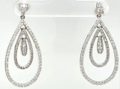 1.50ct Diamond & 9ct White Gold Drop Stud Earrings 7.8g ( 41.00mm x 18.00mm)