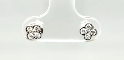 0.25ct Diamond & 18ct White Gold Clover Style Stud Earrings 1.0g