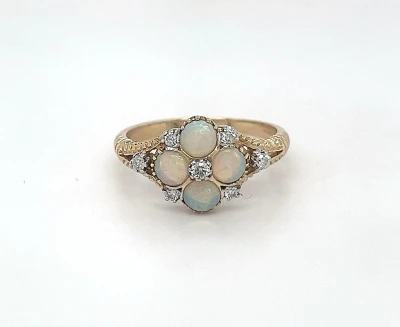 Opal & 0.10ct Diamond -9ct Gold Dress Ring 2.5g