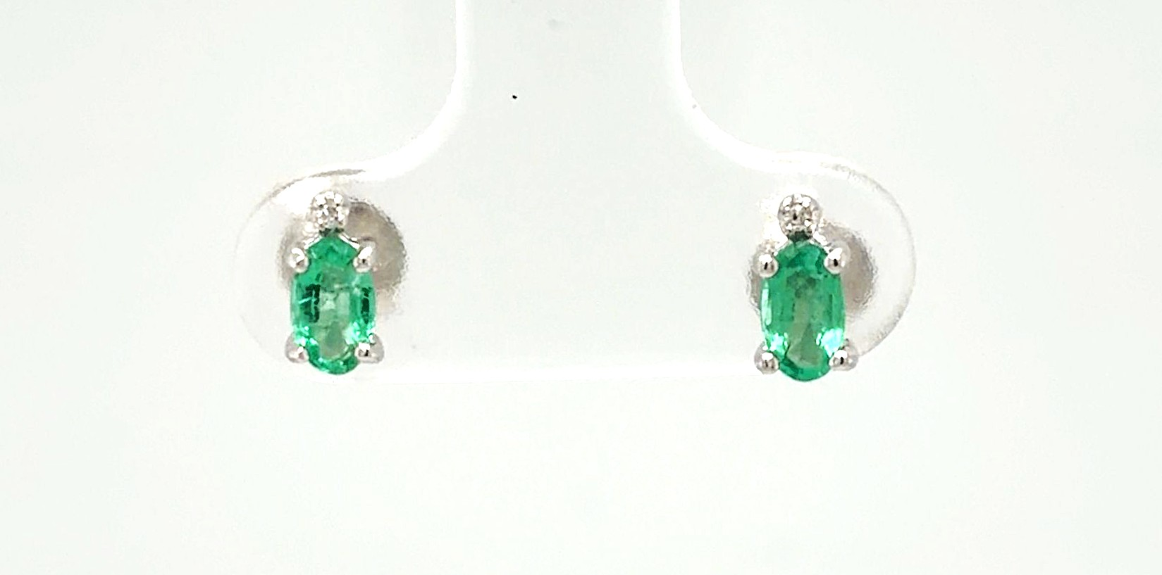 0.40ct Emerald & 0.15ct Diamond Stud Earrings -9ct White Gold 0.9g