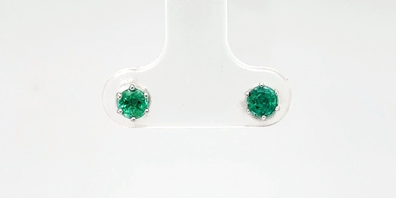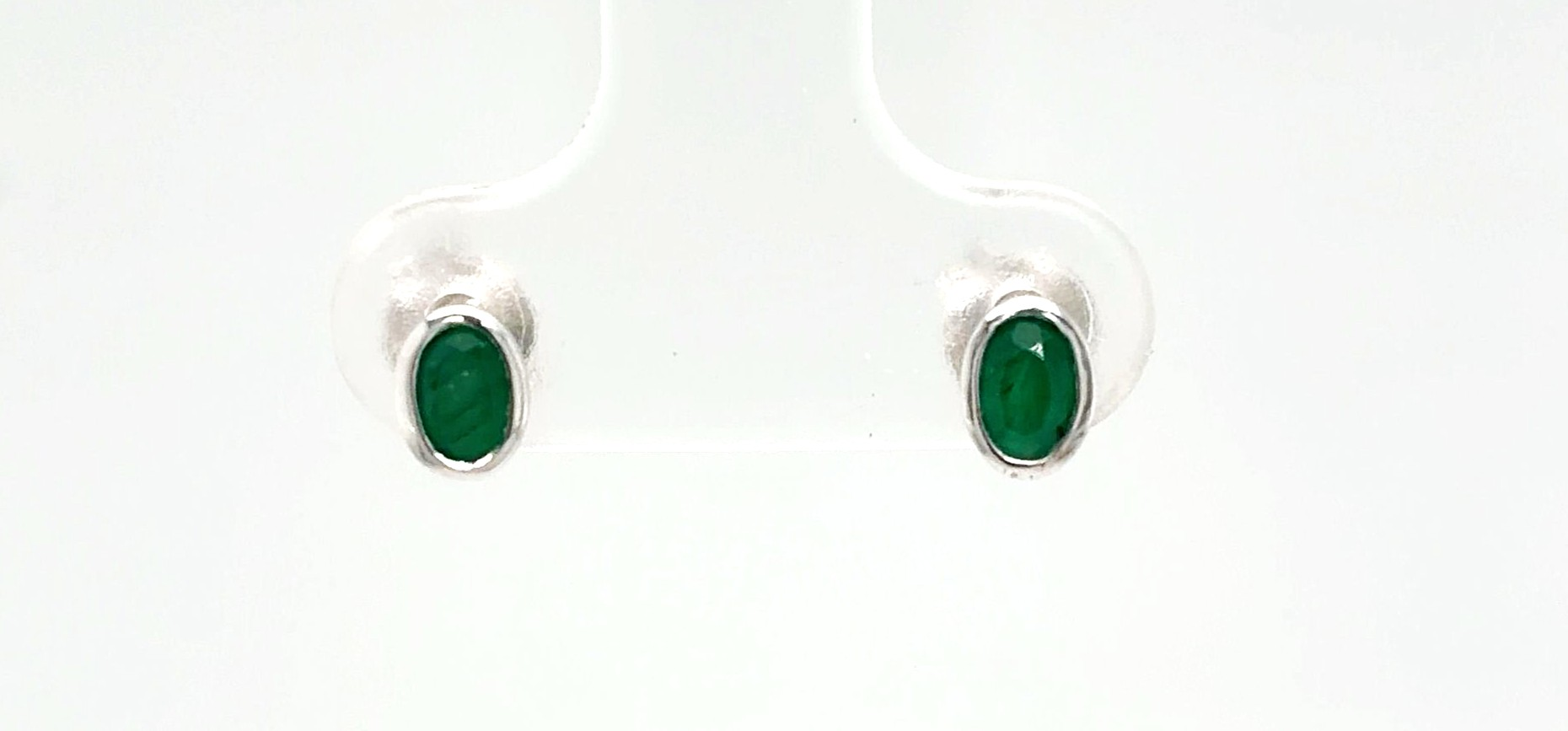 0.80ct Emerald & 0.02ct Diamond Stud Earrings 9ct White Gold 0.7g