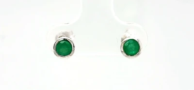 0.84ct Emerald & 9ct White Gold Stud Earrings 1.0g