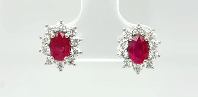 0.80ct Ruby & 0.66ct Diamond Halo Stud Earrings 18ct White Gold 2.7g