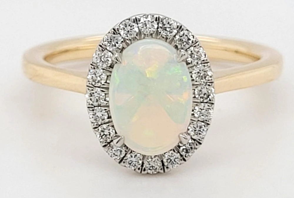 0.70ct Opal & Diamond Halo Solitaire Ring - 9ct Gold 3.3g
