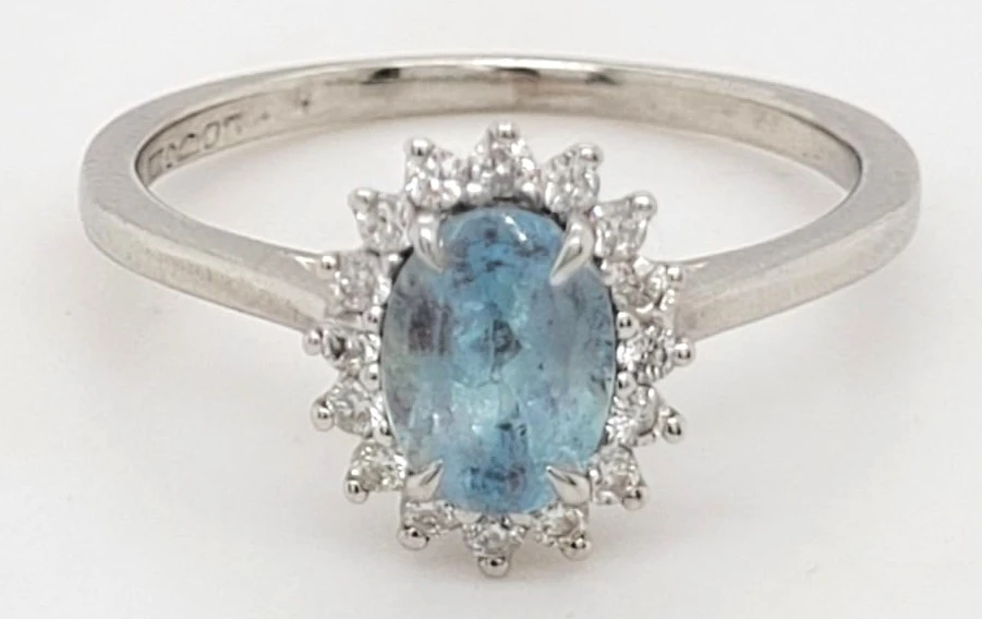 1.00ct Aquamarine & 0.16ct Diamond - Platinum Halo Ring 3.5g