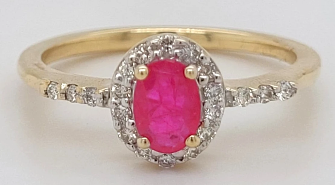 0.75ct Ruby & Diamond Halo Ring 9ct Gold 2.1g Size N