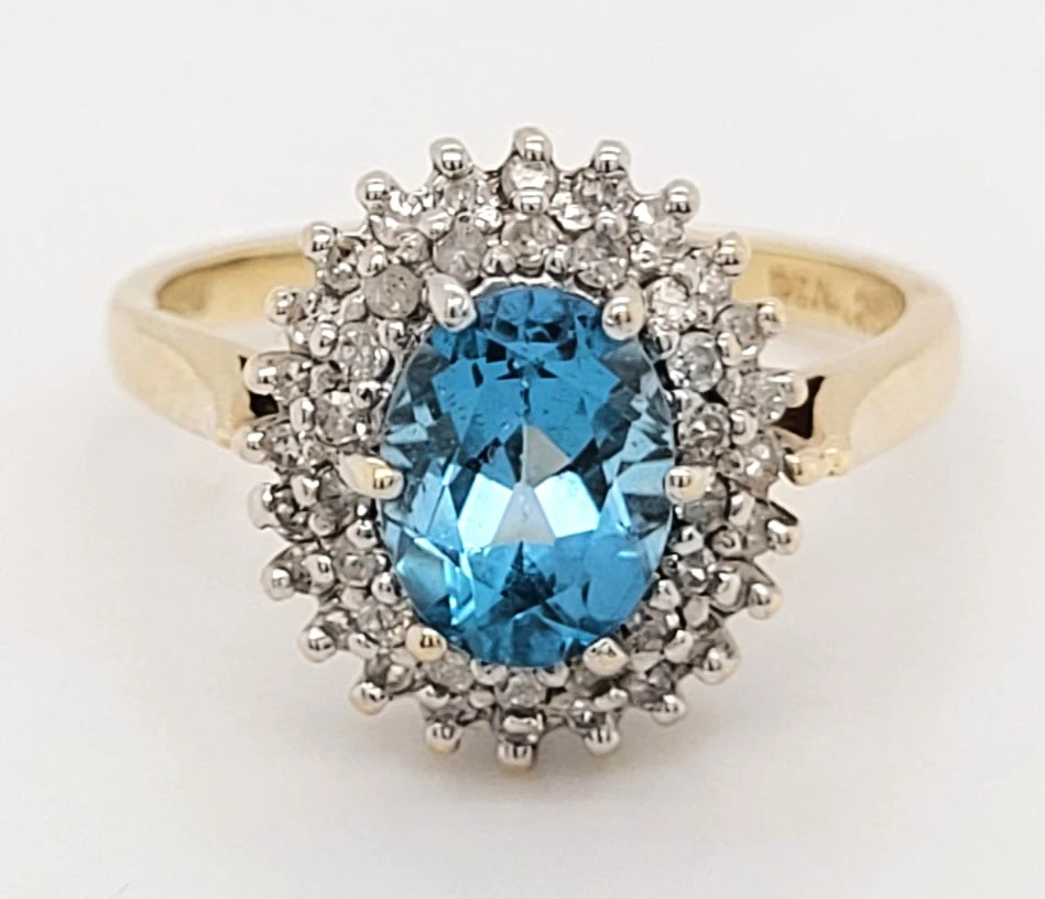 2.00ct Topaz & 0.25ct Diamond Halo Ring -9ct Gold 3.6g