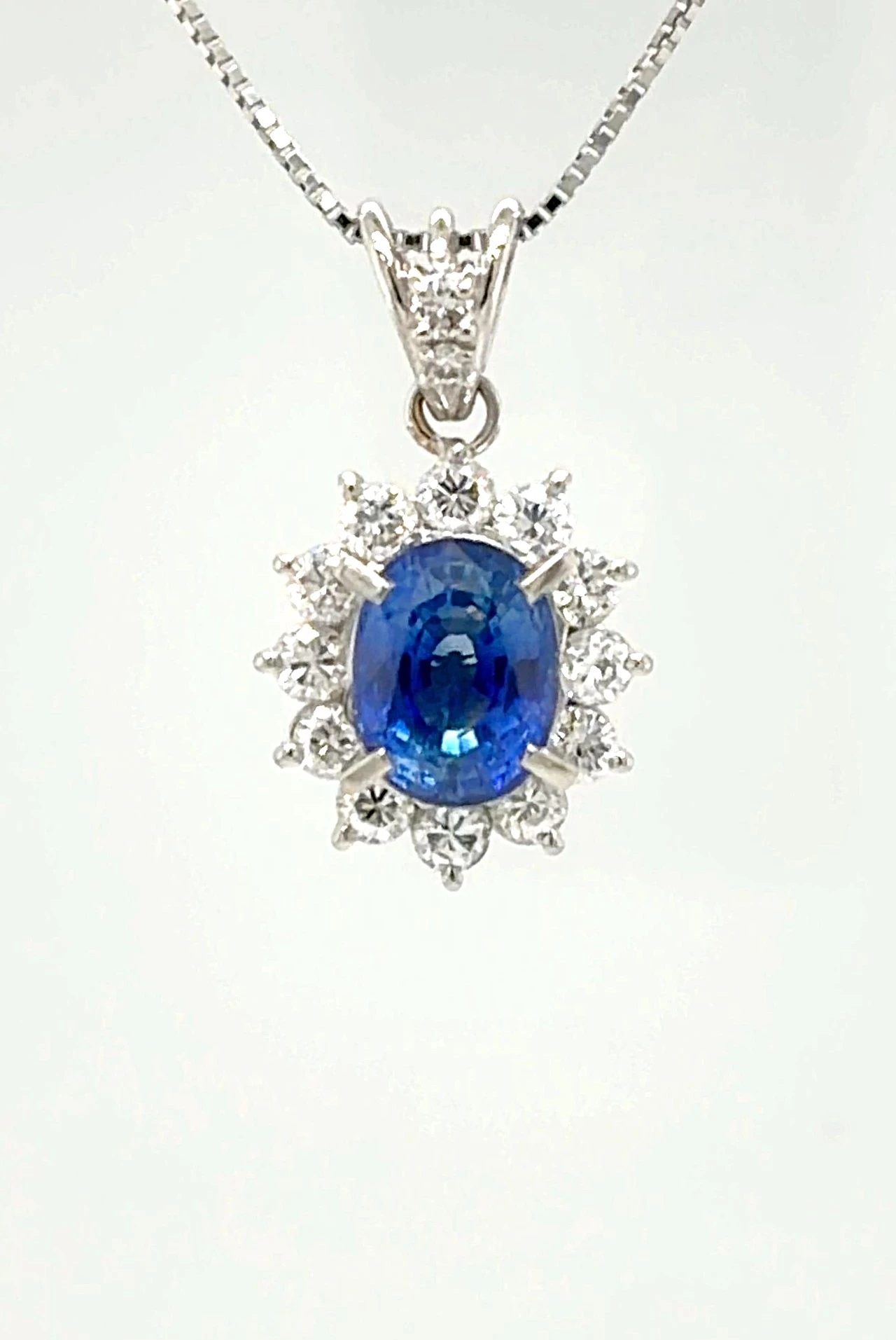 2.31ct Sapphire & 0.80ct Diamond Platinum Pendant 5.4g 16/18inch