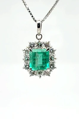 1.35ct Emerald & 0.34ct Diamond Pendant- Platinum 5.5g 17inch