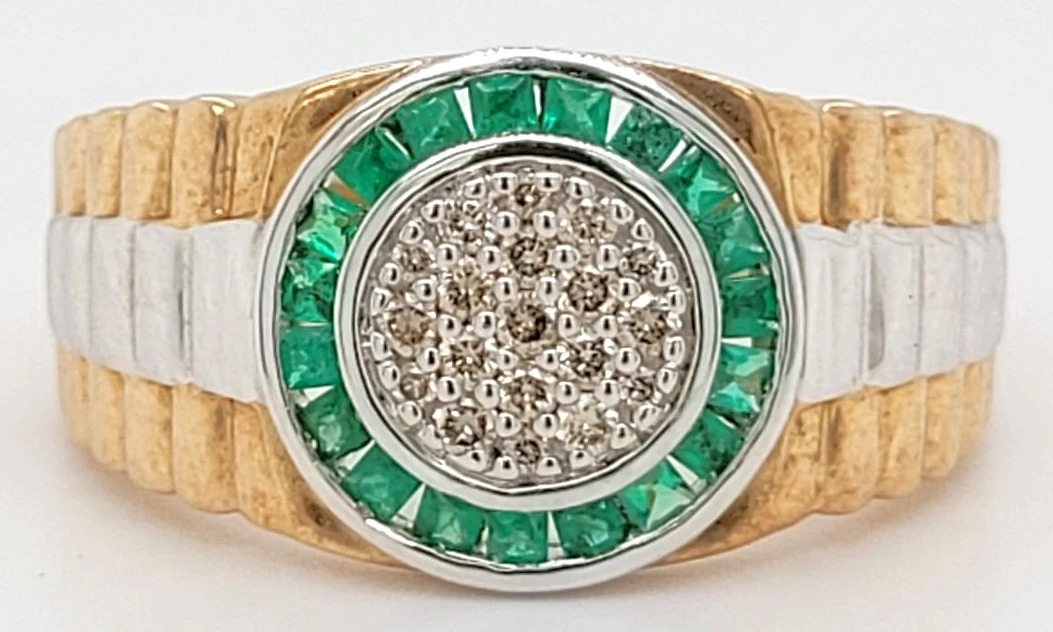 0.48ct Emerald & Diamond Rolex Style Ring 9ct Gold 6.1g Size U