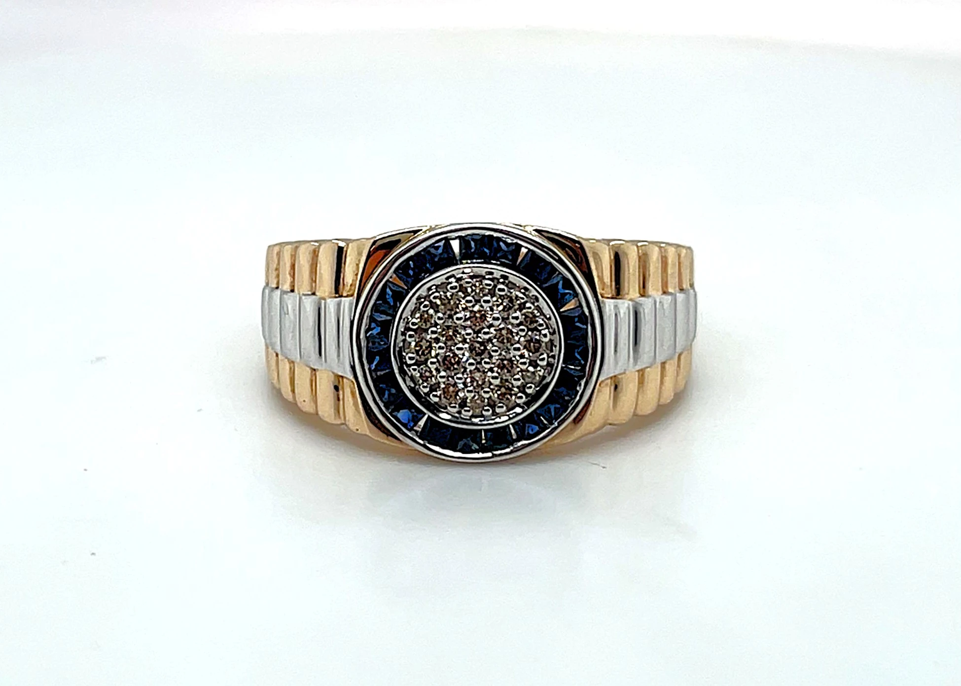 0.25ct Sapphire & 0.23ct Diamonds Gents Ring - 9ct Gold 7.4g