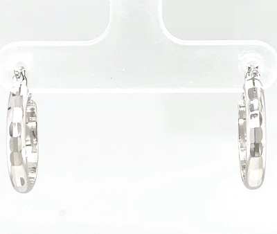 9ct White Gold ( 17.7mm x 3.1mm) Diamond Cut Hoop Earrings 1.5g
