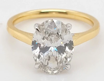 3.34ct Lab Grown Oval Diamond & 18ct Gold Solitaire 4.0g Size: N