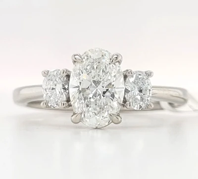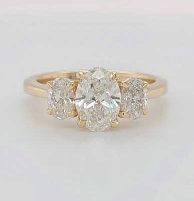 1.71ct Lab Grown Diamond & 9ct Gold Trilogy Ring (Ovals) 3.7g size M