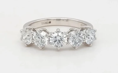 2.01ct Platinum & 5 Stone Lab Grown Diamond Ring 5.9g Size: M