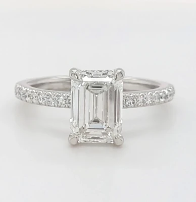 1.58ct Lab Grown Emerald Cut Diamond & Platinum Halo Solitaire Ring 5.7g