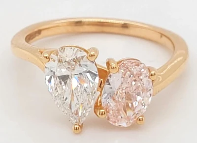 1.89ct Lab Grown Pink & White Diamond & 18ct Rose Gold "Toi et Moi" Solitaire Ring 3.6g