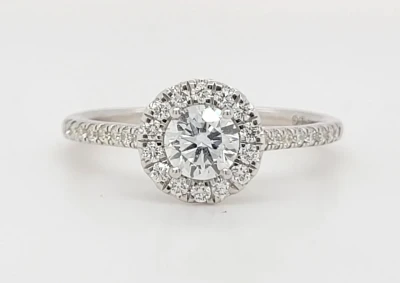 0.89ct Lab Grown Diamond & 9ct White Gold Halo Ring 2.5g Size:N1/2