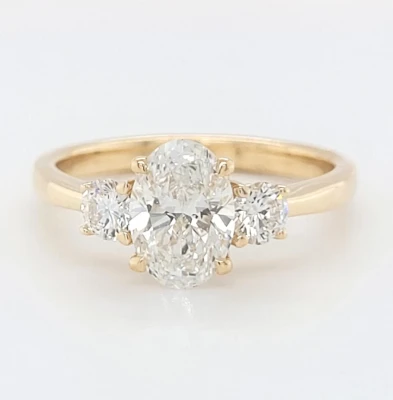 1.71ct Lab Grown Diamond & 9ct Gold Trilogy Ring (Ovals) 3.7g size M
