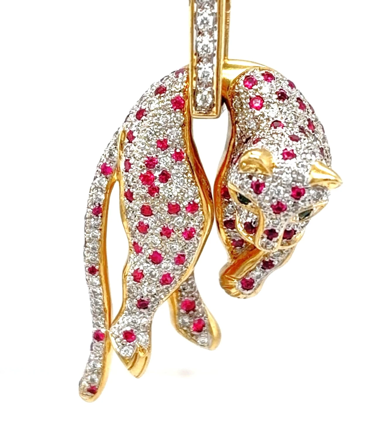 Ruby Diamond & Emerald Panther Pendant 18ct Gold 22.4g