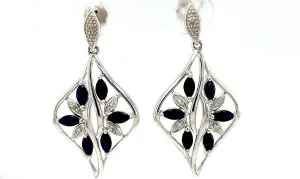 0.72ct Sapphire & 0.10ct Diamond Drop Earrings 9ct White Gold 3.37g
