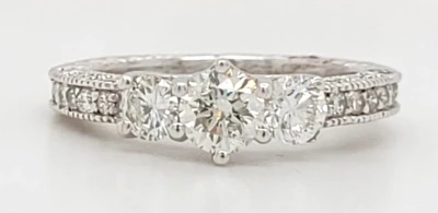 1.15ct Diamond & 14ct White Gold Trilogy Ring 3.1g