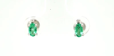 0.40ct Emerald & 0.15ct Diamond Stud Earrings -9ct White Gold 0.9g