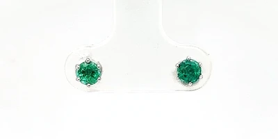 0.80ct Emerald & 0.02ct Diamond Stud Earrings 9ct White Gold 0.7g