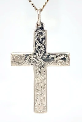 Hand Engraved Sterling Silver Cross Pendant 5.2g ( 35 x 25 x 2.0mm)