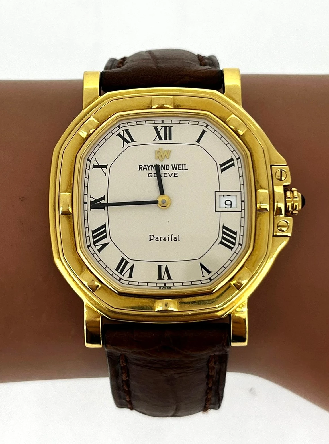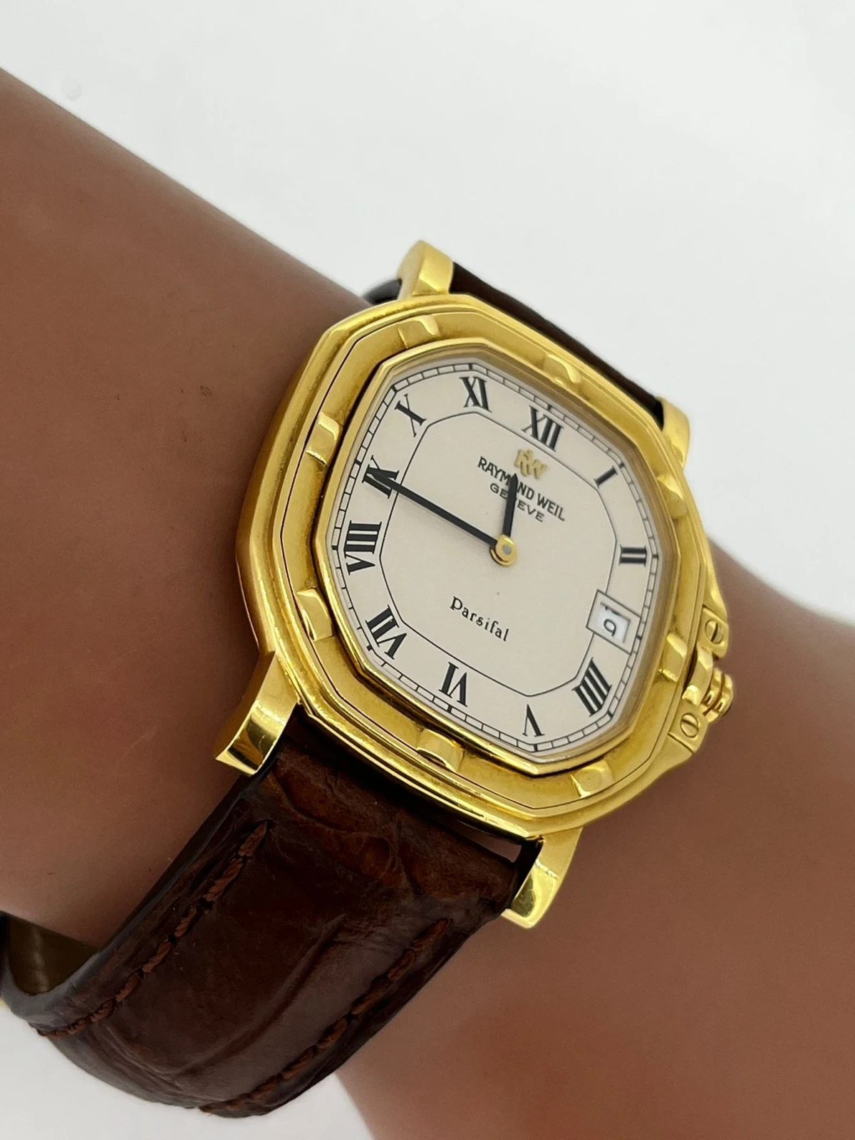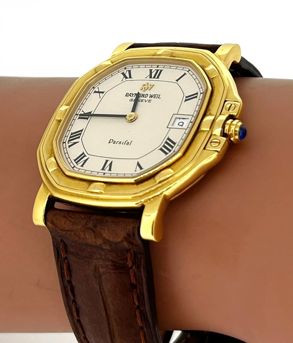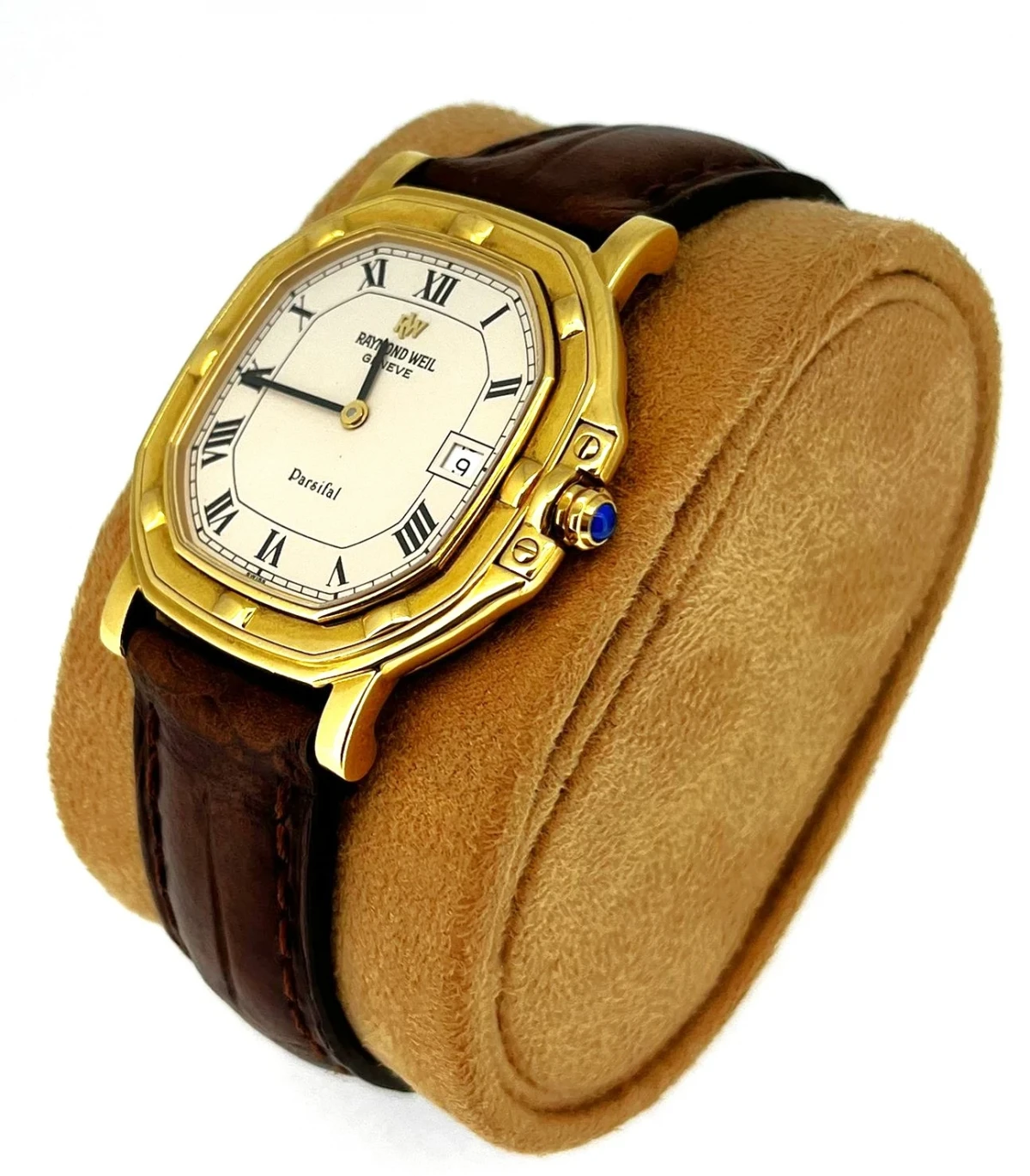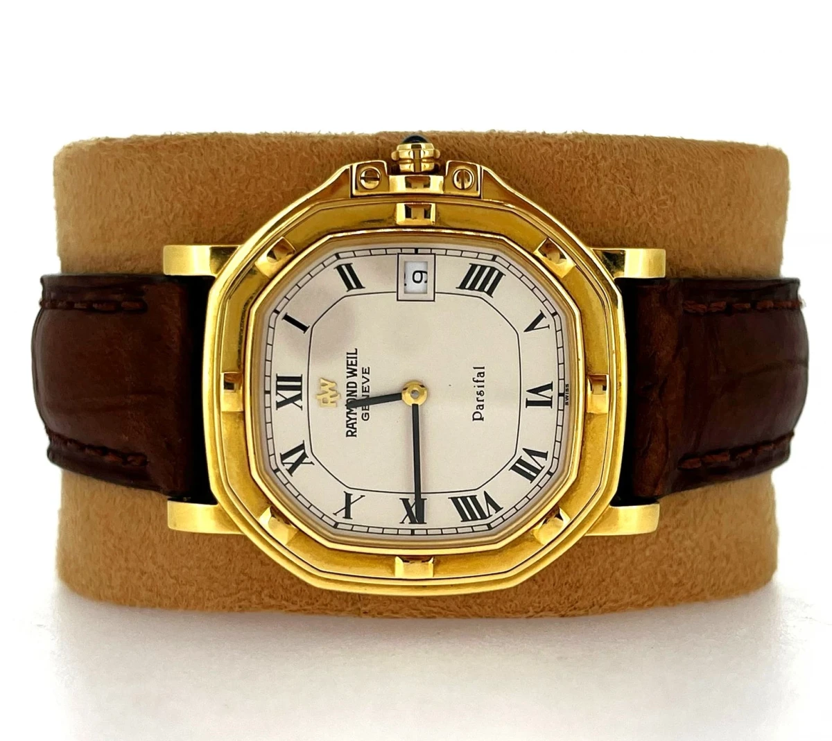 Encased in radiant 18-carat yellow gold, the watch captures attention with its elegantly rounded case and signature gadrooned bezel—a staple of Parsifal’s refined aesthetics.