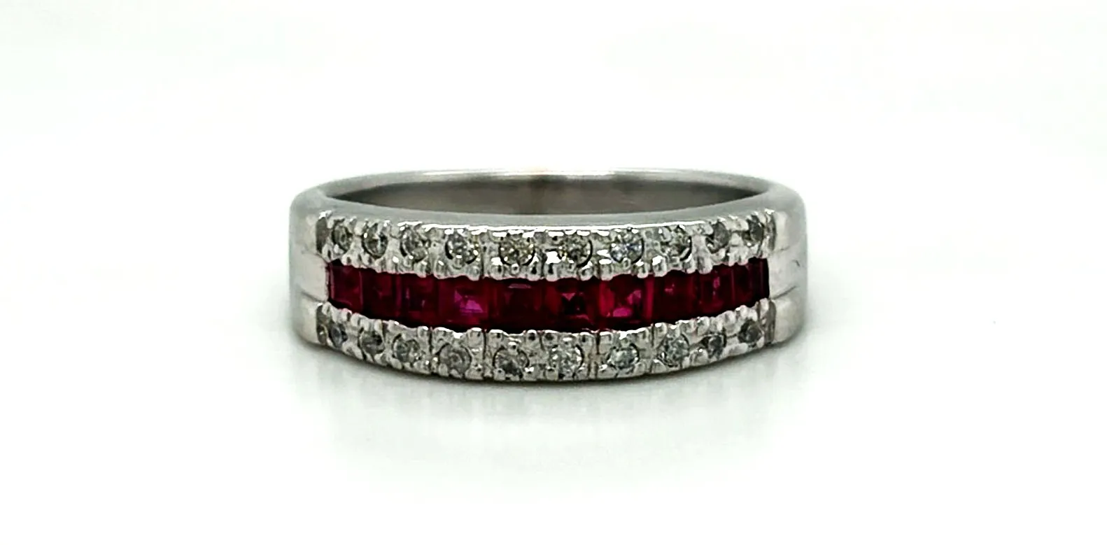 Ruby & Diamond 6.5mm 14ct White Gold Band 5.6g