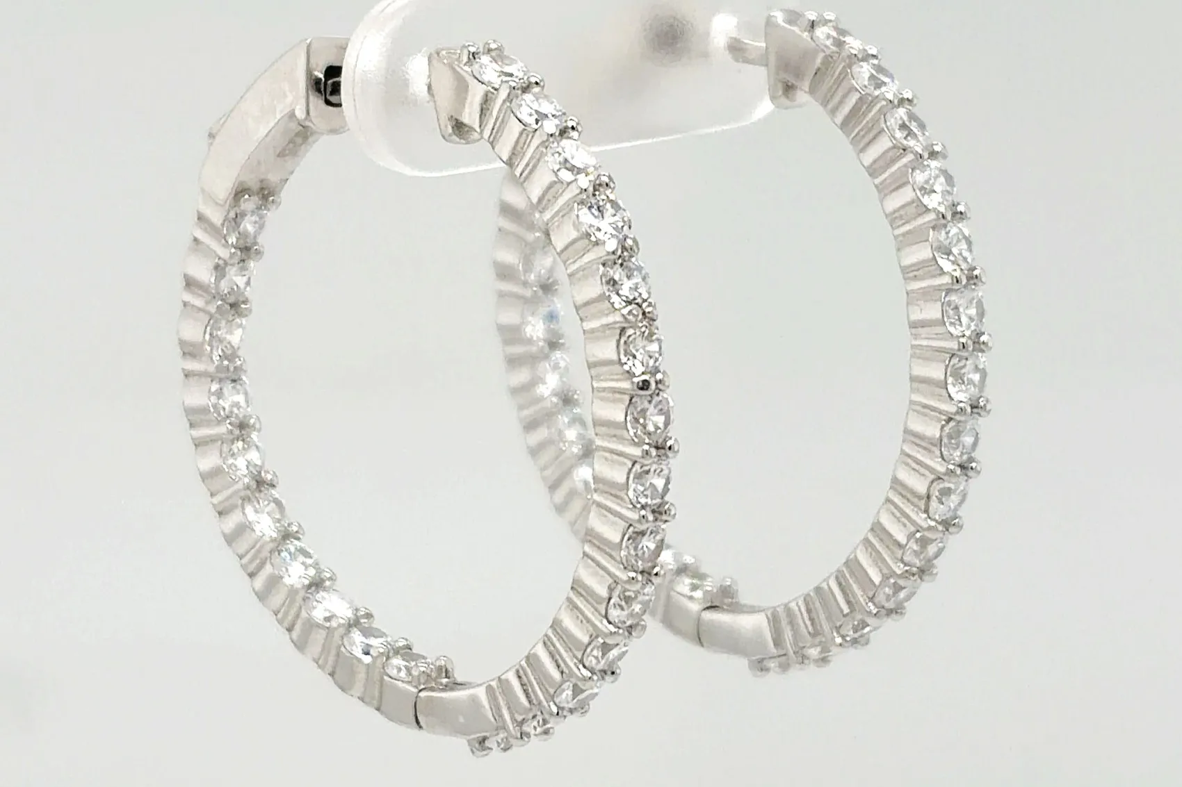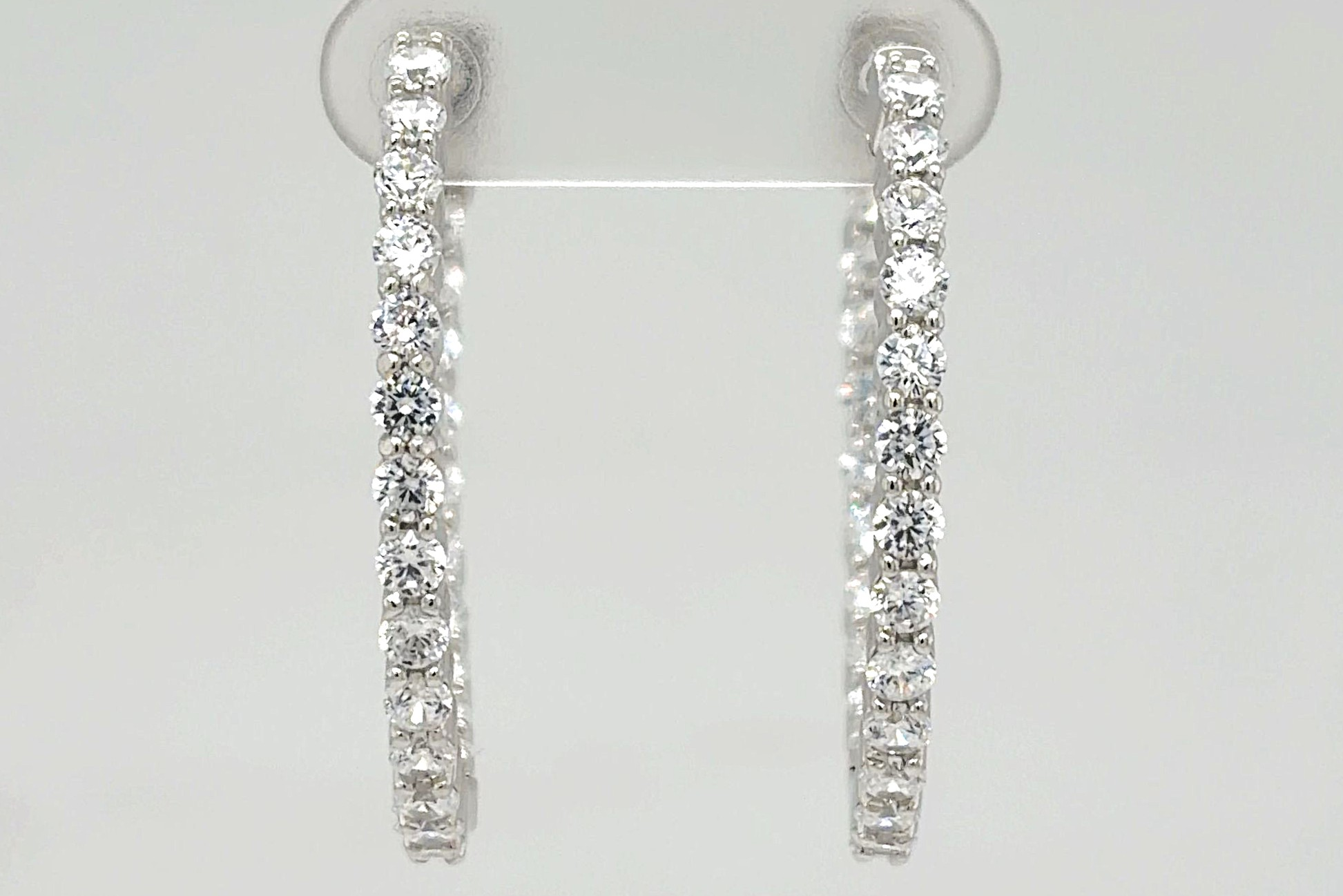 Elegant and versatile, these solid silver hinged hoop earrings are set with sparkling cubic zirconia stones, delivering refined brilliance with everyday wearability. Their classic circular shape and polished finish create a timeless look suited to both casual and formal styling. Crafted from solid silver, the earrings weigh 7.9 grams and measure 31mm x 31mm x 2.5mm, offering a noticeable yet balanced presence. The secure hinged fastening ensures comfortable wear throughout the day, while the shimmering CZ stones add eye-catching sparkle. Perfect as a gift or a staple piece for any jewellery collection, these silver hoop earrings combine classic design with modern shine.