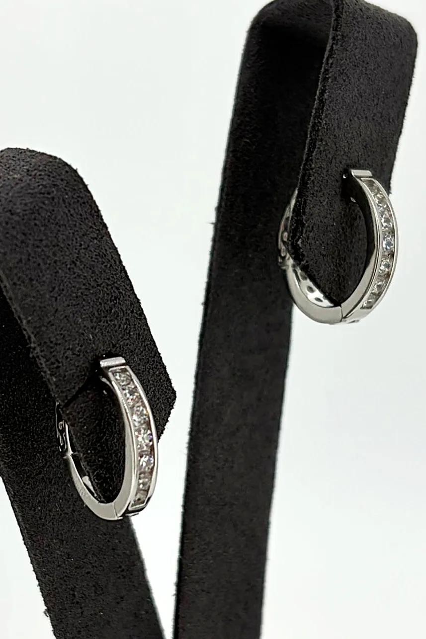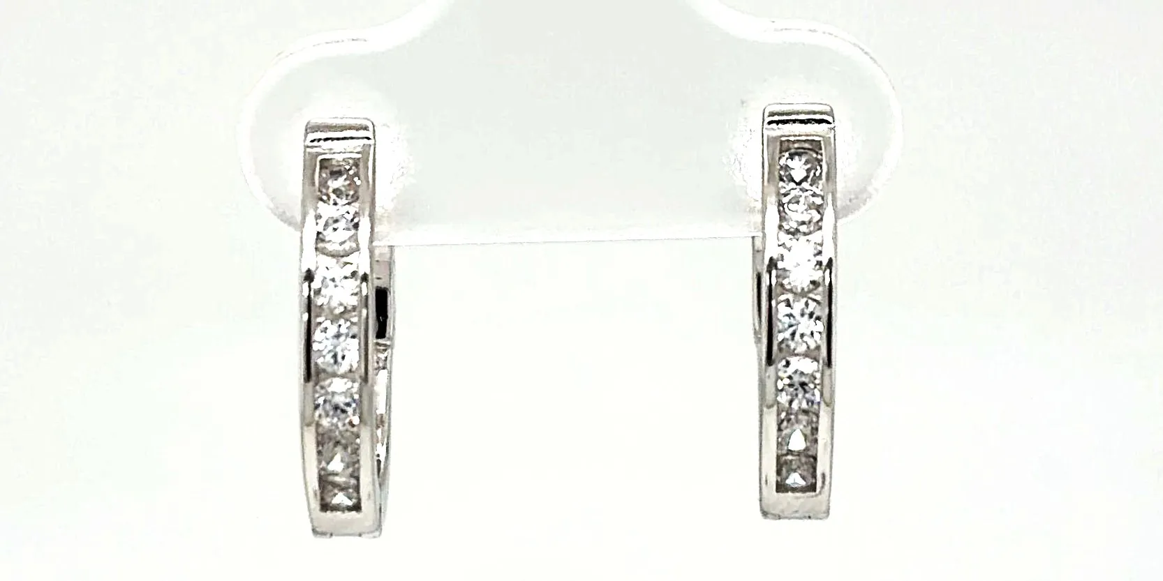 Stylish and versatile, these solid silver huggie style hoop earrings are set with sparkling cubic zirconia stones, offering brilliant shine with everyday wearability. The hinged fastening ensures a secure and comfortable fit, making them perfect for daily use or evening occasions. Crafted from solid silver, the earrings weigh 3.6 grams and measure 15.3mm x 16.2mm x 2.9mm, giving a neat, close-fitting profile that hugs the ear beautifully. The cubic zirconia detailing adds elegant sparkle without compromising on practicality. A timeless jewellery staple, these silver huggie hoops are ideal as a gift or a classic addition to any jewellery collection.