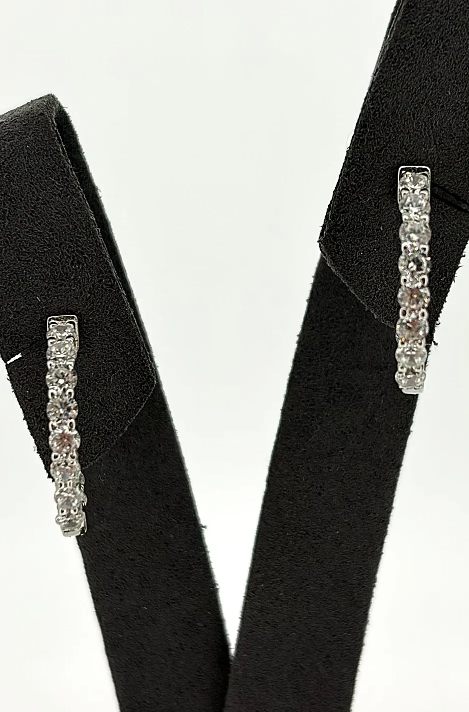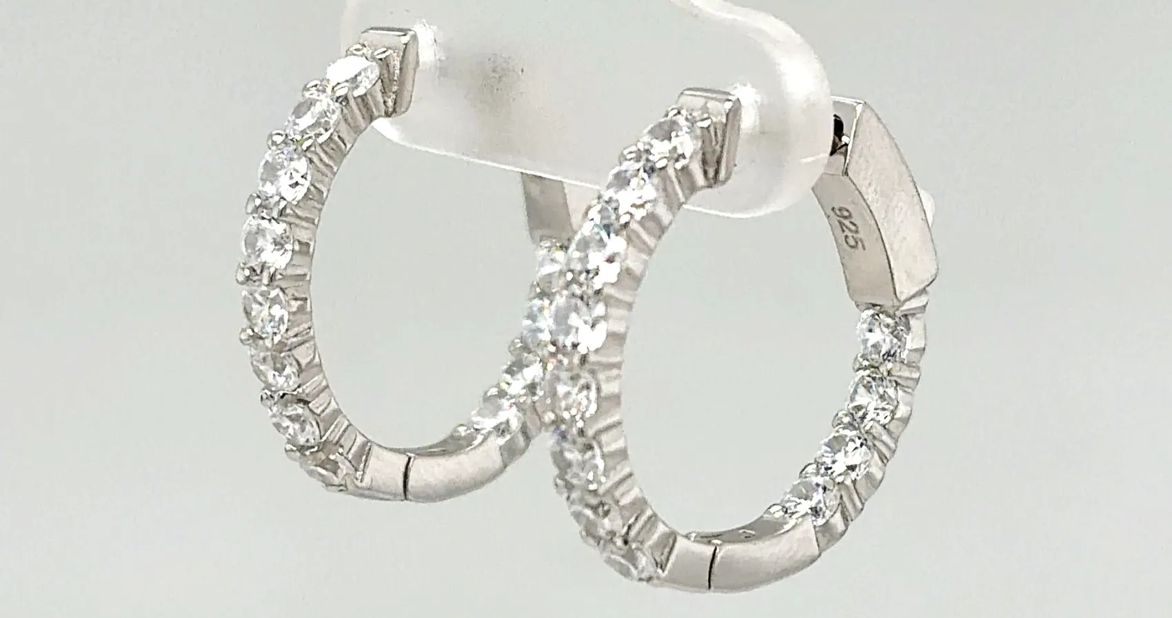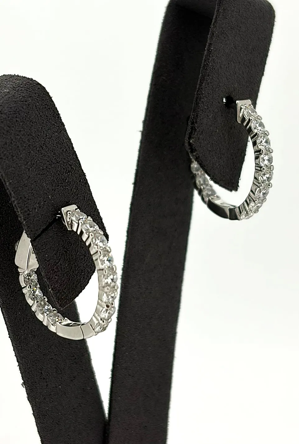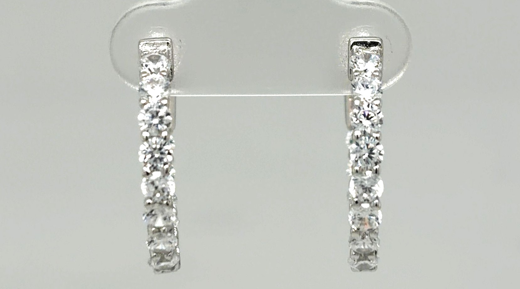 Chic and versatile, these solid silver huggie-style hoop earrings are set with sparkling cubic zirconia stones for brilliant shine. Their compact 20mm diameter and sleek hinged design ensure a secure fit and comfortable wear, making them perfect for everyday elegance or special occasions. Crafted from solid silver, these earrings weigh 4.0 grams and feature a polished finish that enhances the shimmer of the CZ stones. The hinged closure ensures easy wear while keeping the hoops snug to the earlobe for a classic huggie look. A timeless and stylish addition to any jewellery collection, these silver CZ huggie hoops also make an excellent gift.